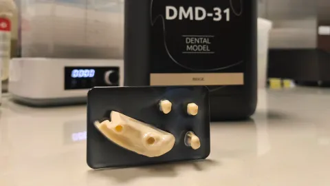 DMD-31 by AmeraLabs offers low-odor printing for implant and orthodontic models. Fast-curing and easy to handle on DLP printers, it keeps your workspace fresh.